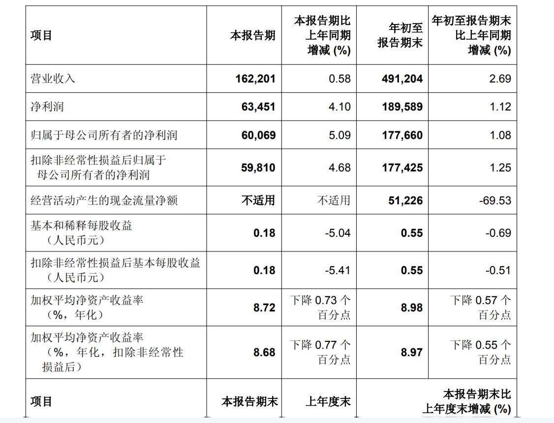 2025年前三季度,集团实现净利润1,895.89亿元,实现归属于母公司所有者的净利润1,776.60亿元,同比分别增长1.12%和1.08%。平均总资产回报率(ROA)0.70%,净资产收益率(ROE)8.98%。